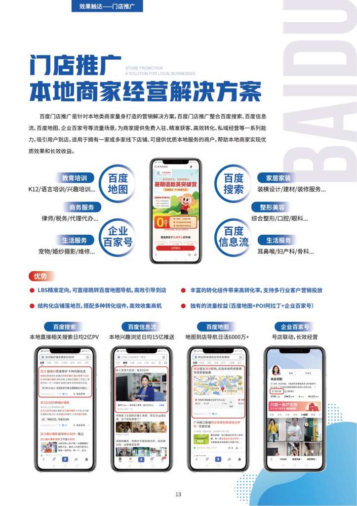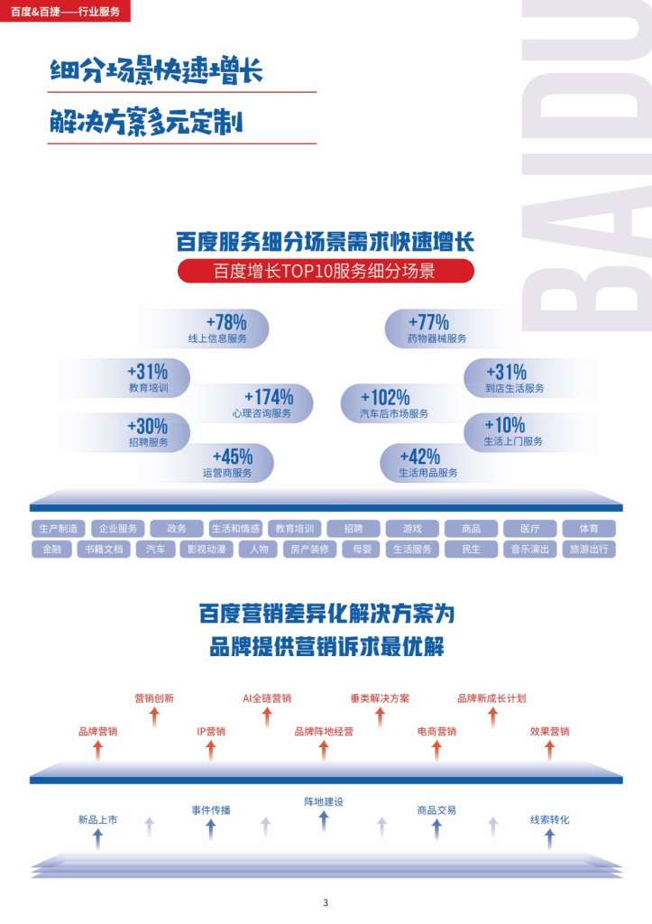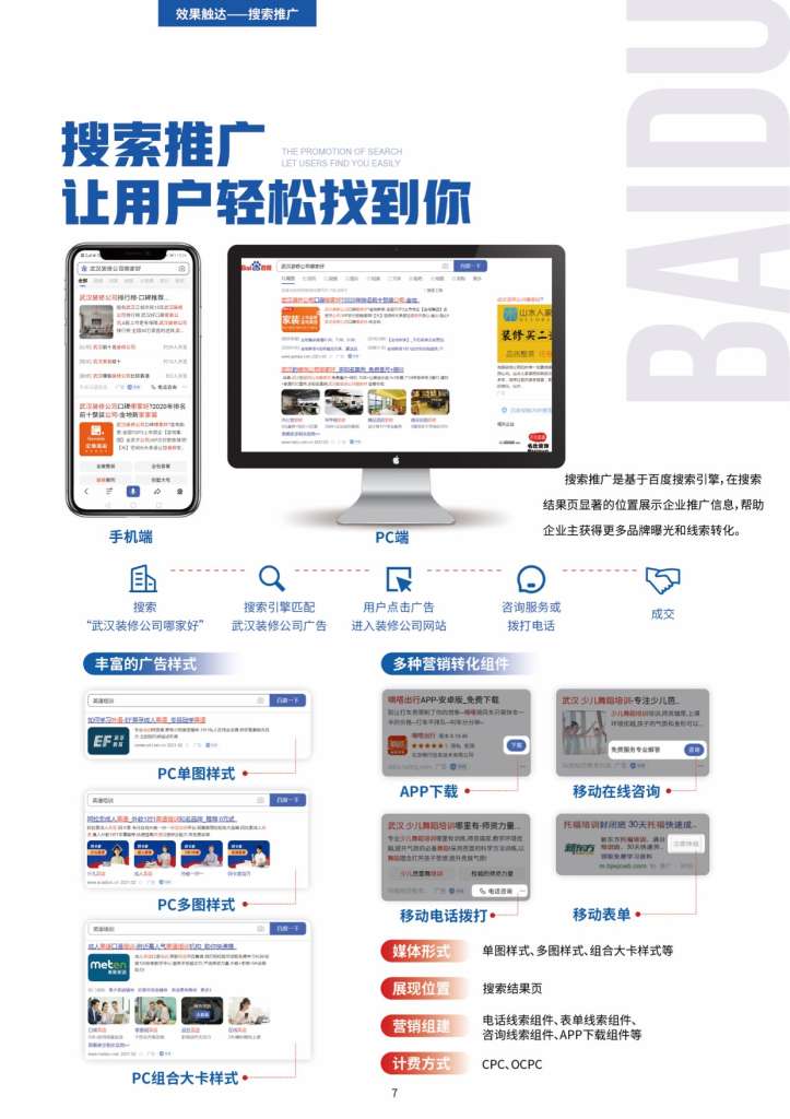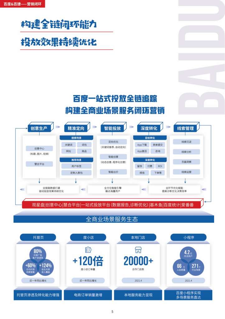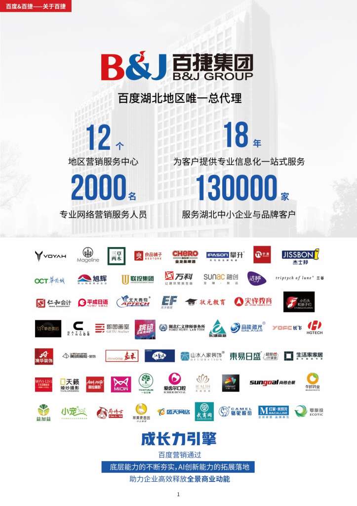 从建站到营销,全程无忧!在百度平均每天有约1273万次商务服务类信息搜索,百度推广——效果之选,成长之道!百捷百度营销(湖北)服务中心可处理包括关键词搜索推广、信息流推广、网站建设和优化、空间域名、企业400电话、无线网络架构等互联网信息服务及网络营销方面的相关业务。百捷是华中地区专业化网络服务供应商,也是华中地区拥有客户量多的且年产值大的的互联网公司,秉承着“一点一滴做服务,全心全意为客户”的服务理念,先后为230000多家各行各业的中小企业解决用网之道,实现网上做生意,提升网络营销投资回报率。在今后的客户服务道路上,公司将继续以专注和专业为企业提供正确的网络营销整体服务,并结合本地服务的优势,帮助当地企业实现真正有效的网络营销。